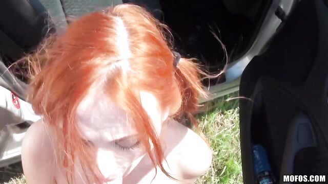 Description: Eva Berger missed her bus to the big game, so the slutty cheerleader offered this bro a good time if he gave her a lift. She flashed him her perky natural titties, gave him a deepthroat blowjob, and then took that dick deep in her tight teen pussy!