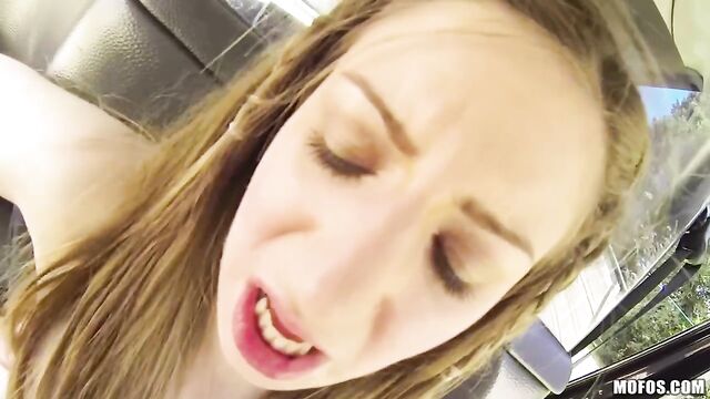 Description: Behold a cabbie's wet dream: an amateur slut who strips naked in the back seat and touches herself to get a free ride. The driver left his security cam running as he went back to fuck Stella's throat and pound her pussy until she came screaming.