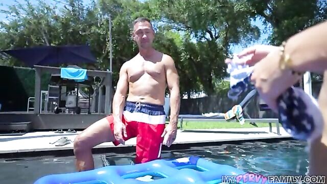 Description:Some people are so unappreciative, including Peter Fitzwell's selfish wife. It's Memorial Day and they're supposed to be together as a family - but of course, she is at the salon getting her hair did!? But Peter is not going to let her ruin this day - he will celebrate the occasion with his stepdaughter JC Wilds. Peter's stepdaughter looks incredible in her themed bikini making it hard for Peter to resist when she wants to play strip tic-tac-toe in the pool. Peter is good at the game and JC's juicy, young tits come out in no time. Strike 2 for JC and she is naked with just her fluffy little landing strip to hide herself behind. JC finally wins a round and Peter has to take his cock out - his stepdaughter is highly impressed with her stepfather's large, thick cock - she's mesmerized! She can't keep her hands off it, she jerks her stepfather and begins to suck him right there in the pool! Peter bends his stepdaughter over and penetrates her with his powerful dick. She whines & moans as she is stretched out by her stepdad's fat member. They move inside and JC climbs aboard Peter to stuff her tiny teen hole. She cums all over Peter's cock in a quivering, creamy mess. Her stepdad unloads all over his stepdaughter's fluffy muff. Now, that's showing some appreciation for your service, right?? Happy Memorial Day, gents!