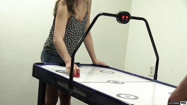 Description: Things get heated quickly after Romeo Price and Kasey Warner build up some sexual tension in a game of air hockey. Kasey goes down on his pink cock, sucking and spitting until it's as hard as a rock! He strips her down while she jerks him off, and then Romeo goes in for dessert... Kasey's delicious pussy! He licks up every last inch of her crotch and fingers his way deep into her smooth pink vag. Once she cums, she jerks him off hard one last time until he finishes all over her cute young face. Kasey eats his cum and rubs the rest into her sexy pink skin!