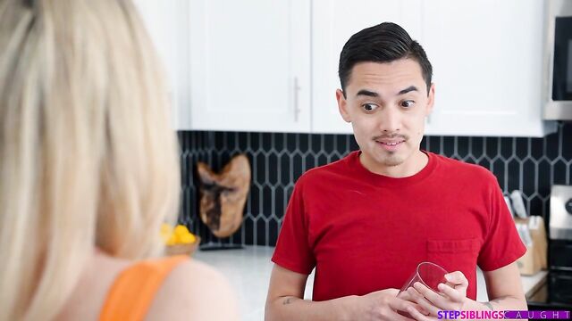 Description: Ashley Alexander is doing dishes when her stepbrother Juan Loco joins her in the kitchen. Ashley realizes this is an opportunity to get naughty and act out a fantasy. She begins grilling Juan about whether all guys undress girls with their eyes.As Juan denies that he has ever undressed Ashley with his eyes, Juan begins imagining her in increasingly sexual positions. By the time Ashley is naked in Juan's fantasies, Ashley comes at him with her own fantasies about the length of his dick. Ashley suggests they both get naked so they can see if their fantasies are right. Ashley goes first, but when she lays eyes on Juan's dick she knows she has to have it. She leans over the counter and tells him to fuck her right here.Juan does as he's told, shoving deep into Ashley's twat from behind. She drops to her knees and licks their juices clean, then gets Juan on his back so she can ride him in reverse cowgirl right on the kitchen floor. Turning around, she goes for a cowgirl ride. Ashley winds up on the counter with Juan buried between her thighs until she squeals her orgasm. When Juan pulls out, Ashley helps him blow his load all over her stomach to finish him off.