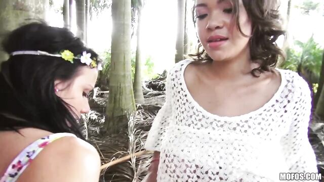 Description: Nothing like sexy hippies stripping down in public! The boss of this job-site found these exhibitionists tied to a tree, willing to do anything to save the forest. Boss called off the job, and the girls said thanks by taking turns sucking his dick!