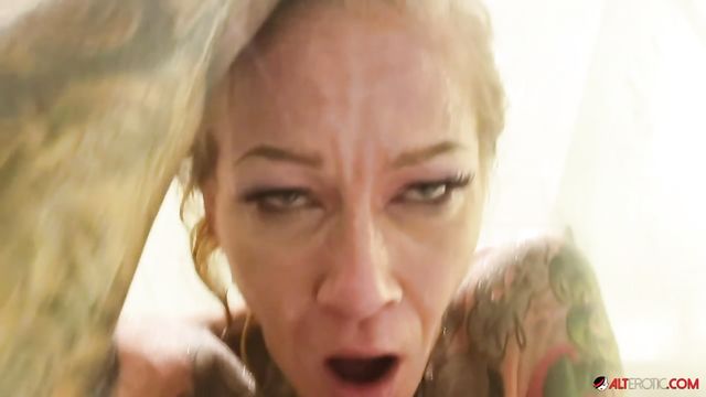 Tattooed blonde Amanda Doll getting savagely fucked here
