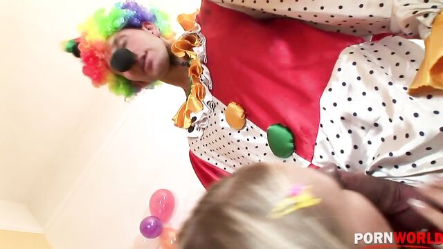 Description: Teen cutie Trisha gets the birthday present she wanted: a good hard dick! The supplier of her present is a clown though and whilst some people are scared of them and others laugh at them Trisha gets horny at the thought of a good hard shag from the hired help!