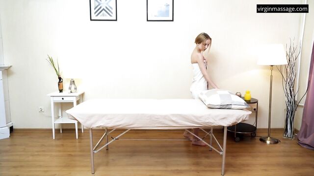 Petite Blonde's first time sex by Virgin Massage