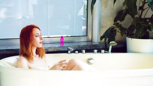 Description: Sexy redhead Elin Flame is in the bathtub, smiling sweetly as she blows bubbles all around. She lathers up her gorgeous breasts, then kneels to squeeze her perky ass cheeks. Running her hands over her slippery body, she strokes her clit and slides a finger into her shaved pussy. The juicy sounds of her arousal mingle with her moans of pleasure as she masturbates, perching on the side of the tub to ride her fingers harder. She shivers through a powerful orgasm, then towels off and puts on her cute underwear, ready for fun.