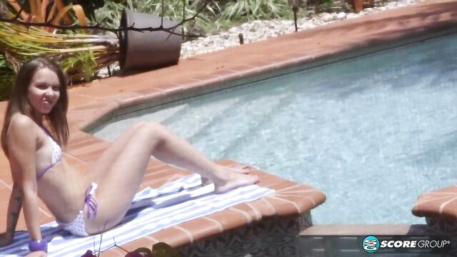 Description:Barely-legal Liza wears an itsy-bitsy, teenie-weenie, purple, polka-dot bikini for these shots, but that's something her parents wouldn't have approved of her wearing back home. "Ugh, I had to get out of there," she told one of the guys here at Naughtymag. "So I totally lied to my folks. I told them that my school had put together a college tour of Florida and I'd be down here for a month. I met a couple of guys at the beach and they've been letting me crash on their couch for a week now."