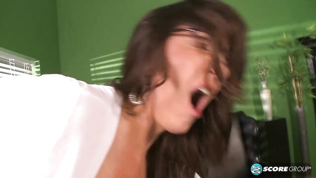 Description:When this scene opens, 48-year-old mom Cassie is sitting on a desk. JMac is sitting in a chair. He's on the phone, trying to get some work done, but that's impossible when a sexy MILF like Cassie is hiking up her skirt and playing with her big tits right in front of you. So he reaches out to feel her tits, and she reaches out to hang up the phone. And away they go.