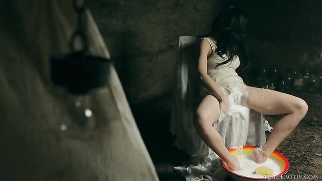 Angelic brunette Emily J slowly touches her hungry wet hole