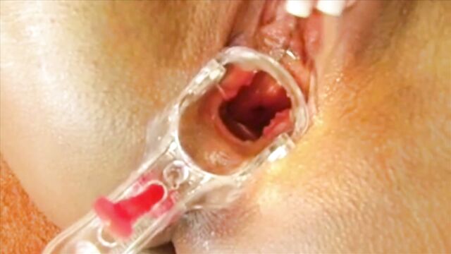 Big titted Dora plays with her pussy and ass. Take a look at her cervix through a speculum and watch her satsify herself till climax.