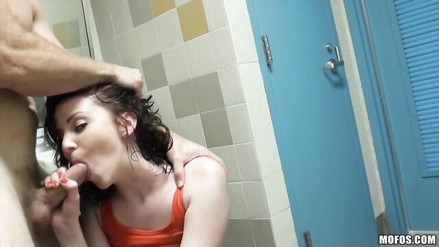 Description: Emma's been training so hard, she rewarded herself with a little fuck-break. She talked her man into sneaking off so they could get really nasty. She let him finger-fuck her tight pussy, before he bent her over the sink and pounded her pussy.