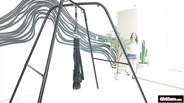 Harley Love gets fucked in the sex swing until she cums over and over again.