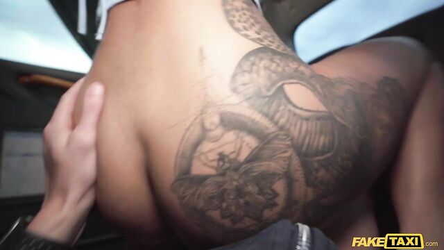Description:I was taking a break when Mih Ninfetinha hopped into the Fake Taxi, asking for a lift. Despite telling the sexy brunette that I wasn’t working, she refused to leave, so I decided to make her a deal. If she gave me a blowjob, I would drive her wherever she wanted! Mih agreed, and the inked-up slut got on her knees and wrapped her luscious lips around my thick dick. The feel of my cock in her mouth made her horny, so the stunning Brazilian rode me in reverse while I played with her big, natural boobs, and then we spooned in the back of the cab! She bounced her tight pussy on my cock some more in cowgirl before spreading her legs and taking a missionary-style fucking. To finish off, Mih treated me to a handjob until I spunked a load directly onto her tongue!