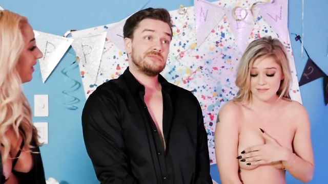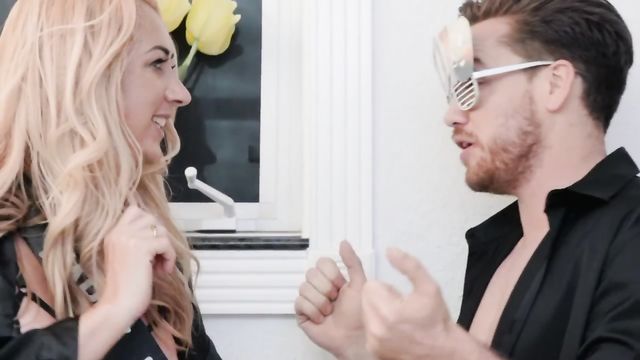 Description:Blonde MILF Janna Hicks got all dolled up in her hottest lingerie to ring in the New Year with a bang, but not only is her new husband late, when he finally gets home after the clock strikes midnight, all he wants to do is go to bed! The sexpot cougar starts taking care of business by herself, but her masturbation session is interrupted by loud noises from downstairs. It turns out her new slutty stepdaughter, Kali Roses, and Kali's boyfriend, Kyle Mason, are throwing a party, and Kali is sucking Kyle's cock in front of all their friends! Janna watches, rubbing her clit, then throws out all the other teens so she can have a private party with Kyle and Kali! Kyle's hard cock is just what Janna needed, and she gets a taste of Kali's nubile pussy too. These blonde babes share their first facial of the New Year!