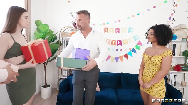 Description: What happens when two very matchy blonde babes, Emma Hix and Kenna James, get down and dirty with a dick and ball pinata at a birthday party? A threesome with their friend’s boyfriend, Manuel Ferrara, of course! Emma and Kenna are so excited to be accidentally twinning on Kenna’s birthday. But even more exciting is hanging their penis pinata. One problem, these pantiless babes are too short to get it hung! That’s when the ever so helpful Manuel comes in. Manuel gets a surprise double blindfolded blowjob and just when thinks get good, the ladies disappear and his girlfriend reappears. Manuel hides his dick in the piñata and runs off to join the lookalike threesome.