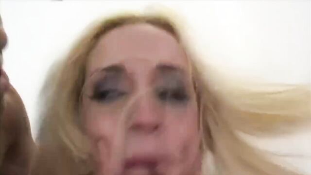Description: Naughty blonde double penetrated in interracial gangbang.