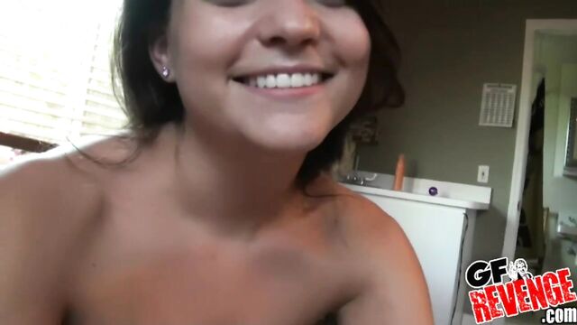 Description: GF Revenge is back with one brand spanking new, real sex video with a really hot brunette with a juicy ass! You're all going to love this sexy, hot momma prancing around in her teeny, tiny thong. Her luscious booty is a delight as well as her supple, big tits. This babe has divine dick sucking skills and really knows how to get down and dirty when it's time to fuck. Don't miss this bad girl get her perfect, pink pussy get slammed by her big dick fellow. She finishes him off with a nice rub and tug job and lets him shoot his milk all over her big boobs. Check out all the kinky fun here on this latest GF Revenge video update!