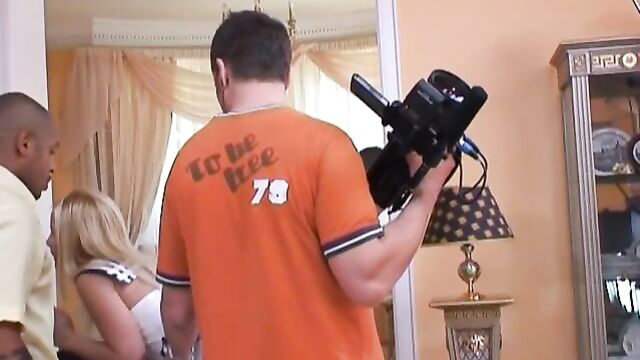 Description:Check out this horny little blondine! She's just eighteen but she wants cock! So she invites two of her friends to her house and at the end, they end up in a hot threesome action!
