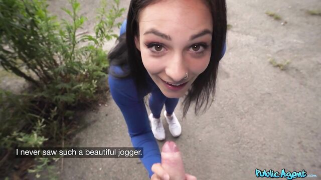 Description: A beautiful woman was jogging by when she happened to notice me hiding behind some trees masturbating! Alexa Throat wasn’t shy, and she approached me, asking what I was doing. I was instantly attracted to the sexy brunette, so I offered her some cash to suck me off, which she accepted! Following an incredible, deepthroat blowjob, I gave Alexa more euros to let me fuck her. The tattooed slut bent over, inviting me to bang her in standing doggy, and then I flipped her over and slid my long, thick cock deep inside her trimmed pussy in missionary position, giving me a fantastic view of her big, pierced titties and inked-up body. To finish, Alexa played with my dick some more and wanked me off until I came in her mouth!