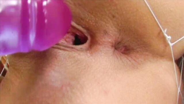 Description:Cynthia's ass is round like a ball. Watch her pee a little as well as put a speculum in her pussy and ride that big 20 inch toy up and down hard.