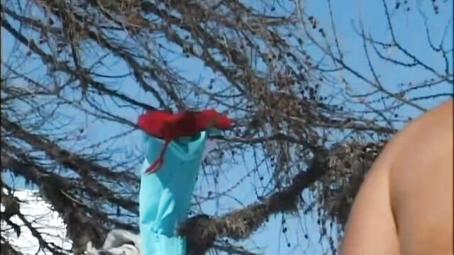 Description: Judith Fox walks around in the snow trying to attract some attention from male skiers. A couple of guys take notice and soon she is on her knees sucking one cock after the other. After her pussy has had a workout she takes one dick in her ass while stroking the other. They DP her before it's over.