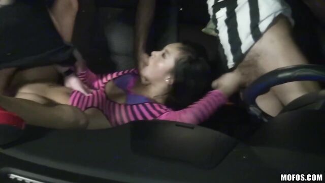 Description: Pull the security tapes on the park and you'll see Alina Li getting double-teamed in her car. When she found out these two randos had thick cocks, she stuck her ass out the window so dude could fuck her so raw while she sucked off his friend.