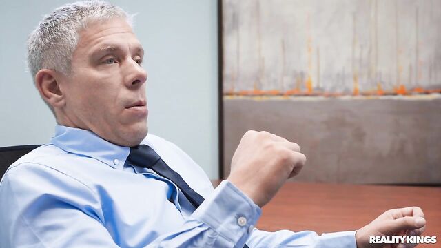 Description: When Juliana Dreams and Ashlyn Peaks catch Mick Blue checking out during the meeting, they get his attention by drawing boobs on the presentation. Then the curvy babes take out their own huge tits and shock Mick by sucking them! The hotties suck his cock, then bring him into a bedroom where they make him watch as they rub their big boobs together and trib. Then it's time for Mick to join in as the business babes use his dick and get fucked!