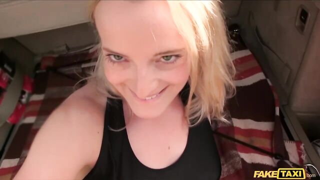 Description:The last thing I was expecting when I pulled over by the train tracks was to come across a stranded cheerleader Diana Sweet in need of a lift. I'd walked away from my cab for a second, and thought it was safe to leave my car unattended, that's when this blonde teen lay out in the back seat to relax, her bare feet hanging out the window in the liquid sunshine. We started talking, and Diana told me she'd been stranded from a Halloween party, and needed a stranger to help give her a lift. I barely had to offer my services as a driver before Diana was proposing we work out a sexual deal to get her home. With my cab's security cameras recording our public sex tape, I slipped my cock deep in her shaved pussy and pounded Diana right there in the open air, leaving her with a huge dripping creampie!