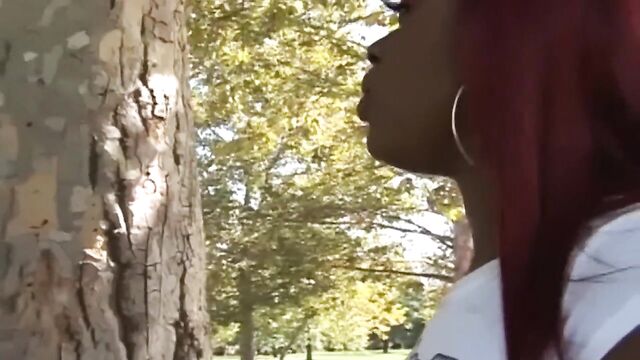 Modest femme at big cock trailer