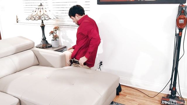 Description: Nanny Riley Jacobs is cleaning up the household. She gets down on her hands and knees to clean beneath a table, but when she tries to back out, she realizes she's stuck and starts to panic. While she's struggling to get out, the oldest son of the family, Brick Danger, happens by and sees her. He's shocked and innocently approaches to offer to help but Riley panics again and tells him to fetch his dad instead. Brick hurries off, calling out to his dad.A moment later, Brick arrives with his dad, Preston Parker, who is curious and concerned when he sees Riley stuck. As Preston squats down behind Riley to help, he can see that she's not wearing any panties. Preston is shocked and quickly sends Brick away. Riley is embarrassed about not wearing any underwear and asks for Preston's help getting unstuck.Preston admits that he feels guilty about being aroused by the sight of Riley's pussy and is so distracted by it he doesn't immediately help her get unstuck. Preston says he won't be able to until he calms down.Riley invites Preston to fuck her, knowing that fucking her will help him calm down enough to help her get unstuck. Preston is very hesitant but unable to resist. He takes his cock out of his pants and slides it into her tight pussy as Riley moans.Riley's certainly gotten herself into quite the predicament!