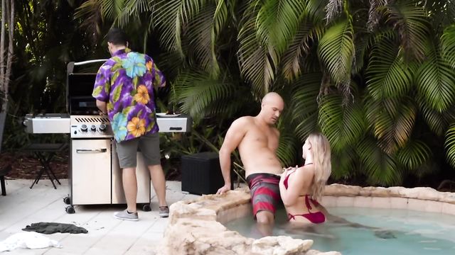 Description: Blonde teen Bailey Brooke hoped her new bright red bikini would get her boyfriend's attention, but when he doesn't give her that D she just has to rub her pussy herself...until her man's buddy Sean Lawless arrives! Sean can't take his eyes off Bailey's big tits, and she gets them out to give him a better view, then sucks his cock in the hot tub right behind her BF's back. Bailey wants even more of that dick and she'll do anything to get it, so when the pool gets too crowded she heads inside to the shower where Sean can give her pussy a deep pounding and soak her face with his cum!