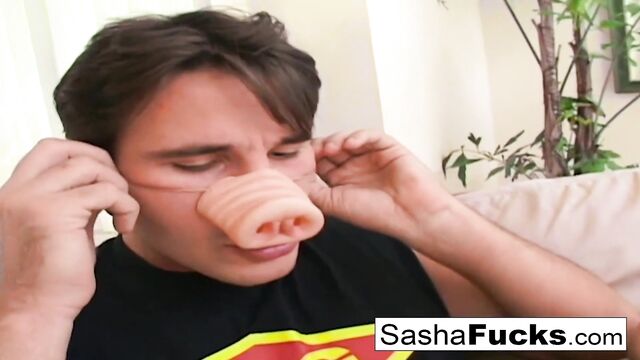 Sasha strips her red corset off for hard anal sex