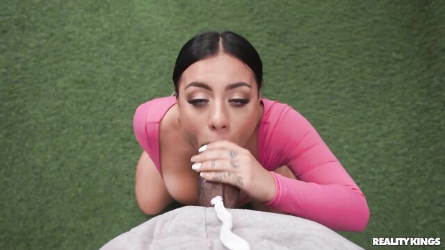 Description: Petite and stacked brunette Melztube has the gym to herself, the perfect opportunity to pull out her big tits and take some selfies in the mirror. Her reps have her getting horny, and she starts touching herself on a bench, but before she cums, she has to put her clothes back on when Damion Dayski and his friends come in. Mel entices Damion away from the weight rack with her huge jugs and her juicy booty, and sneakily sucks and titty-fucks him. She begs for that big dick in her pussy and gets just what she wants... at least until Damion's friends catch them!