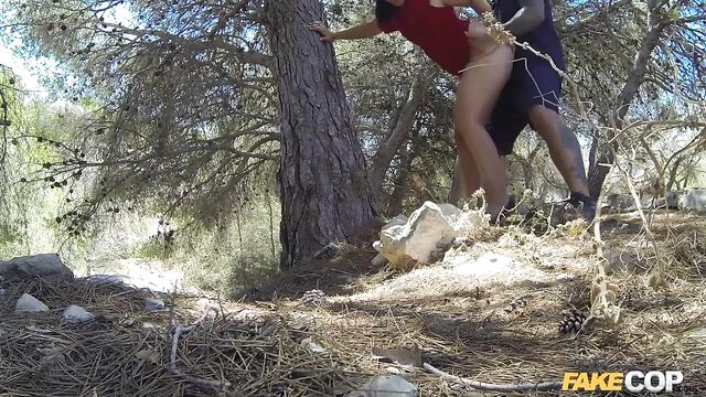Description:You have to forgive me for mistakenly thinking this hot Spanish smokeshow Pamela Sanchez standing by the side of the road was a prostitute. What a pleasant surprise to find out within minutes that even if she wasn't a working girl, Pamela still fucks like a whore. After chatting with her for a few minutes, she told me her car was broken down, and she needed some help from a big strong policeman such as myself. I was hoping for a look at her big tits, but Pamela upped the stakes by proposing a blowjob right out of the gate. I drove over to her parked car, watching her big thick ass jiggling in that red dress while she walked off. Right there in the open, Pamela sucked my hard cock, blowing mne like a naughty girl with no worries about being spotted by any passing strangers. She didn't mind my camera rolling a POV sex tape while we fucked, and opened her mouth wide while I striped her face with jizz right there in the woods!