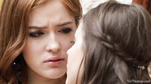 Description:Gorgeous redhead Jia Lissa looks stunning as she gets dressed up for a night out, in episode one of Sandra Shine's sensational erotic movie 'Glamorous.' She admires herself in the mirror in her sexy purple dress, applying gloss to her luscious lips, trying on jewelry. As she slides her cute feet into her shoes, her hot girlfriend Sybil A arrives, looking equally irresistible in a figure-hugging black dress and heels. Sybil caresses Jia's perky breasts, teasing her pink nipples to stiffness. She kisses Jia and slides a hand between her thighs, stroking her through her panties. The girls peel off their dresses and Jia peppers kisses all over Sybil's perfect body, pulling off her lace bra and panties, and kneeling to lap delicately at her hot pussy with its neat bush and smooth lips. Sybil's beautiful breasts jiggle and she rocks her hips forward to meet Jia's mouth, spreading her juicy pink folds open. Jia's tongue pushes deep as she licks and sucks avidly. Sybil turns around for Jia to eat and finger bang her from behind, driving her to an orgasm that makes her gasp and shiver. Sybil strokes Jia's pussy with its flame-red bush then licks her sensitive clit as she frigs her with two wet fingers. Jia lets out sexy little moans as her climax overwhelms her. The two beauties kiss passionately, their elegant dresses strewn across the floor.