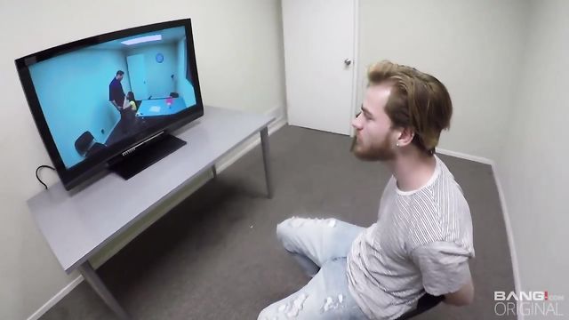 Description: Violet Myers is being interrogated by the police because they have evidence that she has been a very bad girl. The interrogator is to go through any means necessary to get information out of this sex latina. They offer her a plea deal as long as she gets on her knees and sucks his rock hard cock. She gets laid across the table and gets her bushy pussy pounded out while the other detectives watch from the two way mirror!