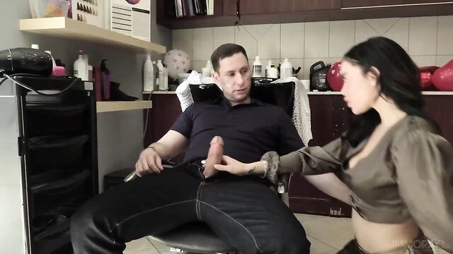 Description: Brad Knight knocks on the door of the new hair salon that opened and introduces himself to hair stylist Victoria June. Brad Knight sits down and tells Victoria June that he wanted a 'pussy special' as he has heard from his best friend Porno Dan that this salon offers kinky services. Victoria June suggests that Brad get a 'makeup special', and he agrees. Victoria June makes small talk and has Brad close his eyes as she applies makeup and rubs her big boobs on Brad. When Victoria June shows Brad a mirror, he is shocked that he has a rainbow and glitter all over his face. Brad cannot contain himself and tells Victoria he thought he would at least be getting a handjob as his friend Porno Dan told him the salon offered 'special services.' Victoria tells Brad she was joking around to see what he was willing to do and then pulls out his big dick and gives him a blowjob. Victoria June and Brad engage in a hardcore hookup in her hair salon, with the big booty Latina cumming multiple times on his massive cock. Brad is stunned to discover the husband of Matt Bird is watching him fuck his wife and even more shocked when he invites him to have a threesome. Make sure to watch part three, in which Brad and Matt double-team hotwife Victoria June.