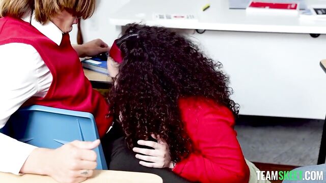 Description:The teacher is absent today, so Pixie, the teacher’s pet, is put in charge of the class. She needs to make sure everyone writes their essays, but she is stuck with Axel and Nade, the two bullies and also the worst students in the class. Knowing her classmates won’t be able to focus, she negotiates: they’ll do a fun game first and then get to work. Pixie proposes to the boys some games, prompting the guys to tease her for being so naive. However, Pixie is so obsessed with sex that she immediately finds a way to spice the games up. Axel and Nade stop teasing her as soon as they realize they will get a kinky taste of the teacher’s pet. The game starts escalating from a series of horny challenges to one hell of a threesome that gives the boys the right motivation to do their homework.