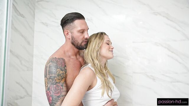 Chloe Rose pleases her pussy with a dildo before getting fucked in the shower.