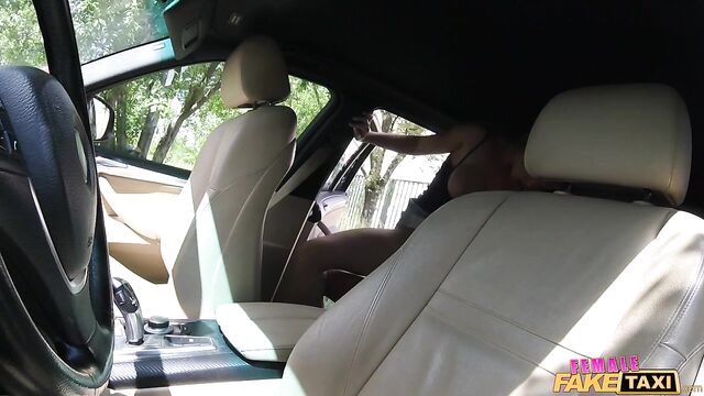 Description: I do love getting these handsome young studs in my cab, especially when they fuck me as well as Nick did. After we chatted for a few minutes, I could tell the moment was right for us to take our ride to the next level, so I pulled down my top and gave him a peek at my big tits. He was shy to look at first, but Nick started to warm up as we drove, and he got good and hot when I joined him in the backseat so he could grab and squeeze my big fat tits. Looking at the bulge pressing against Nick's pants, it was clear his cock wasn't shy, so I put my lips on it and sucked him until I gagged on his dick. Watch the amateur sex tape I was able to compile from my cab's security cam footage to see how much fun I had humping this guy in the backseat!