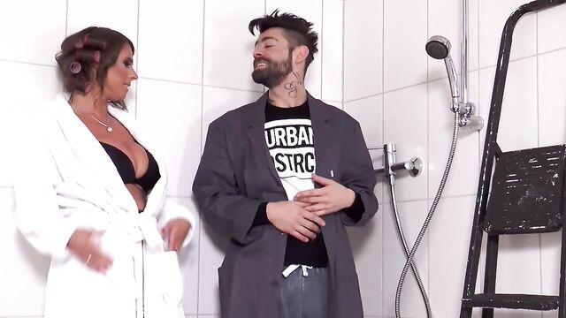 Voluptuous milady at handjob action