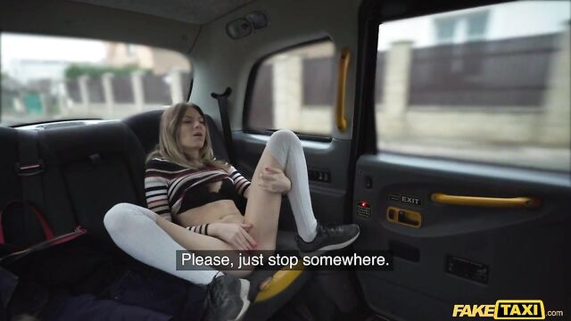 Description: This petite blonde got into the backseat today and told me "just drive." I thought it was strange, but I've had more bizarre requests, so I went along with it. She asked me if I was married, and said she was wondering because I turned her on. I thought it was a prank, but when she spread her legs, took off her panties, and played with her tits, I knew she was serious. She said she had a boyfriend, and this was a fetish they shared, her hooking up with strangers. She begged me to pull over so she could suck me cock. I fucked her tight, wet pussy in the backseat of the car and made her climax, then I pulled out to cum on her.