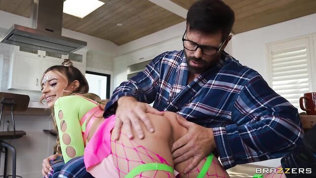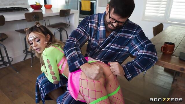 Description:College girl Aria has been out all night, worrying her mom and her mom's boyfriend, G.I. Joey. He tells her mom to go to bed, he'll wait up for Aria. When she finally comes home at 7 am, G.I. Joey can't believe her slutty outfit, and then he notices there's cum on her face! He scolds her, but she just laughs at him and says she can do what she wants. She mocks him by begging for forgiveness on her knees, and then climbs over his lap and begs for a spanking. How can G.I. Joey resist such a naughty party girl?