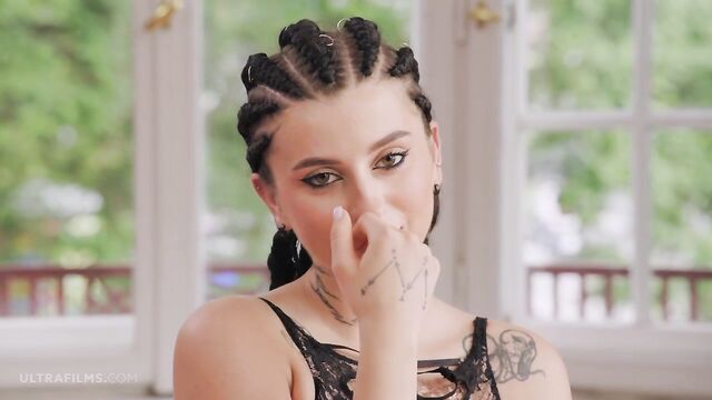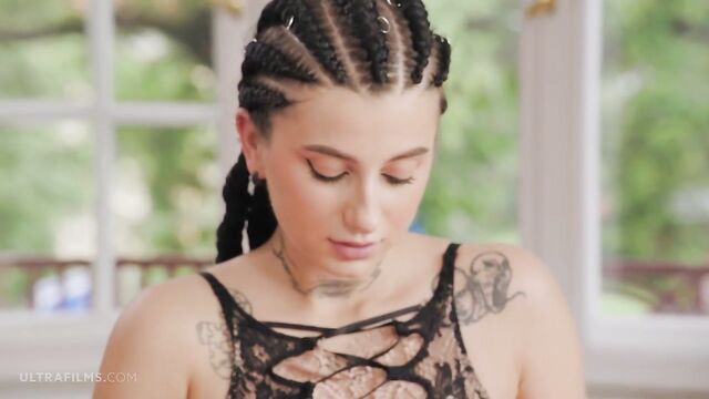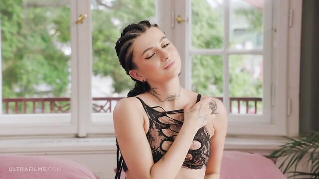 Soloing inked brunette Sarah Heizel knows how to play in solo style