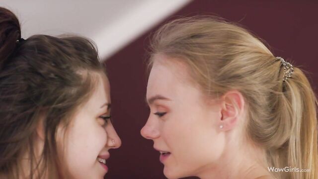 Pretty playful chicks Nancy Ace and Leah Maus have fun in the bed