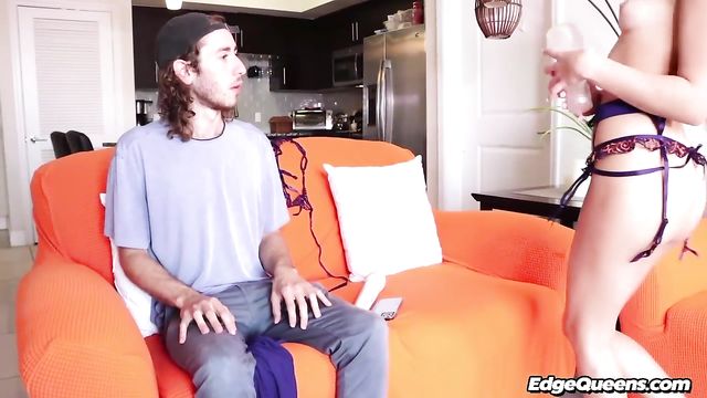 Description: Hot teen MacKenzie Maze was having phone sex with her boyfriend when her roommate came in. This brunette babe feels really horny right now and is gonna use her fleshlight to jerk off that lucky dude, until he is about to cum. MacKenzie controls his orgasm and teases him until he is begging for release.