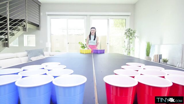A flirty cutie challenges her man to a heated game of pong that leads to her getting stuffed by his massive cock!