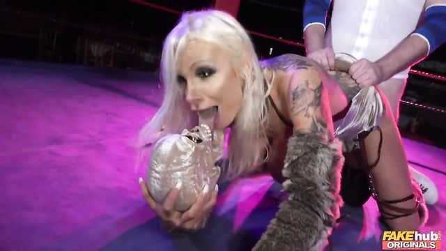 Description:Our newest contestant on Knockouts is The Bard (Ryan Ryder), a prancing fighter who shows the penis is mightier! Squaring off with the Bard is the Pirate Princess Tempest, but the powerful Bard quickly scores the first fall. Using a chair as a weapon, Tempest pins The Bard for the second fall, then wins the match thanks to interference from her former enemy Astrid the Viking Warrior! Angered by his loss, The Bard confronts Astrid, who calms him down with a slutty blowjob. Astrid shows The Bard how to fuck like a viking with a dirty rimjob, a sloppy tit wank, and plenty of hardcore sex!