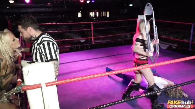 Description: Our newest contestant on Knockouts is The Bard (Ryan Ryder), a prancing fighter who shows the penis is mightier! Squaring off with the Bard is the Pirate Princess Tempest, but the powerful Bard quickly scores the first fall. Using a chair as a weapon, Tempest pins The Bard for the second fall, then wins the match thanks to interference from her former enemy Astrid the Viking Warrior! Angered by his loss, The Bard confronts Astrid, who calms him down with a slutty blowjob. Astrid shows The Bard how to fuck like a viking with a dirty rimjob, a sloppy tit wank, and plenty of hardcore sex!