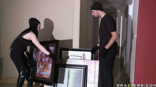 Description:When Keiran attempts to steal Diana Prince's priceless paintings, she catches him red handed and literally with his pants down. Impressed by the size of his cock, she holds off on calling the cops and instead decides to imprison his dick deep inside her ass. Who says that crime doesn't pay?